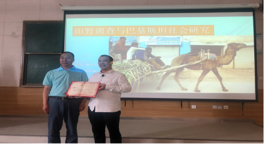 7月15日10:30—12:30在东二楼F107教室,陕西师范大学西北民族研究中心教授、教育部“新世纪优秀人才支持计划”福特基金“亚洲人研究亚洲”( Asian studies Asia)项目获得者美国加利福尼亚大学人类学系高级访问学者博士生导师马强教授为学院师生作了《田野调查与巴基斯坦社会研究》的主题报告报告学院社会学系主任马海寿副教授主持。报告前,学院为马强教授颁发客座教授聘请证书。