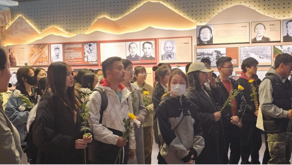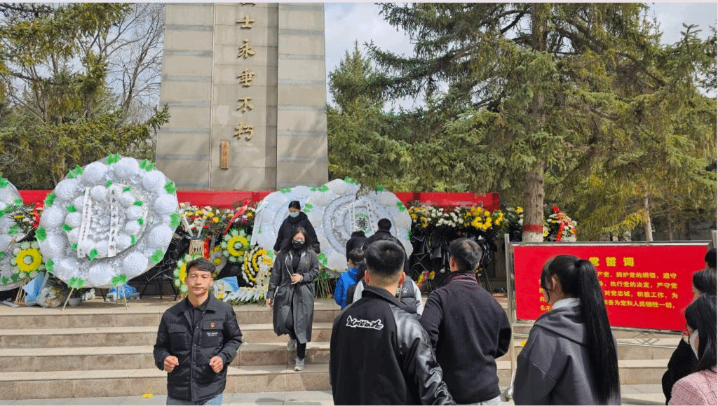 青山不老,松涛依旧。在西路军烈士陵园,同学们向壮烈牺牲的西路军战士敬献鲜花,默哀致意,在烈士碑前重温铿锵有力的入党誓词,表达了对革命先烈的深切缅怀和无限敬仰之情。