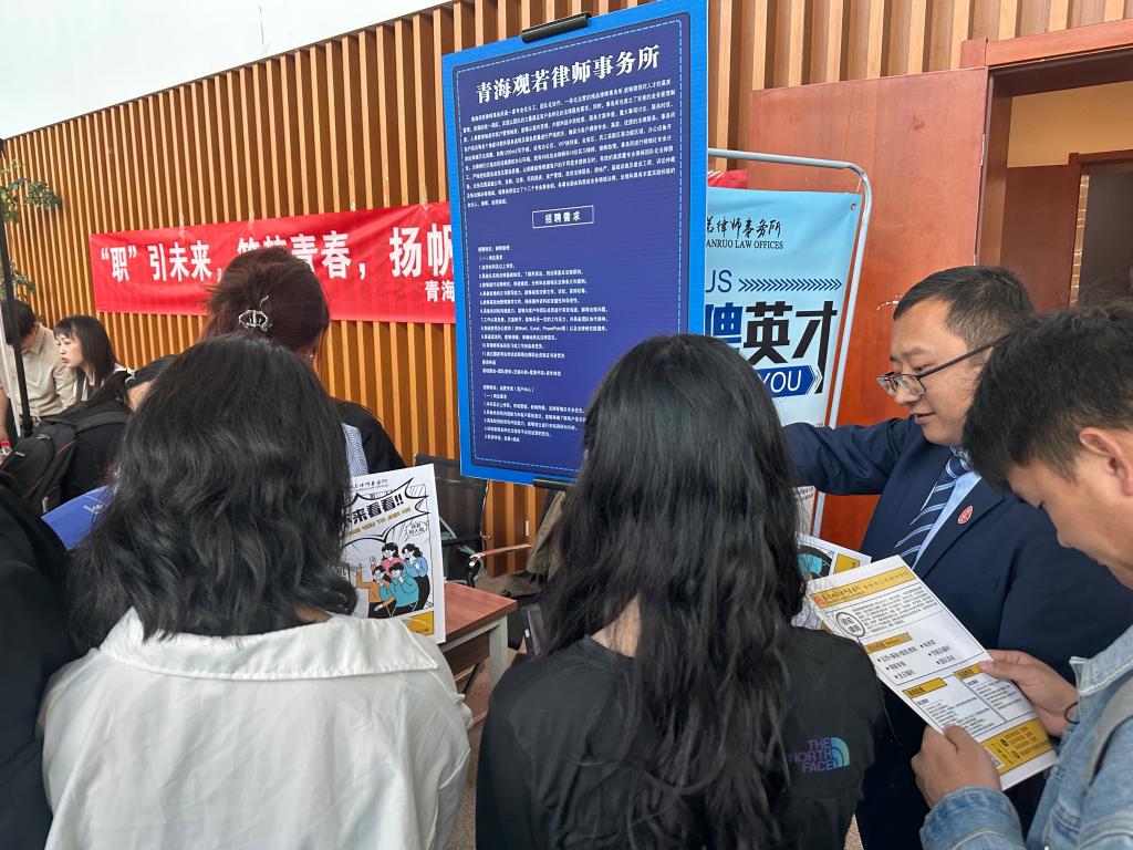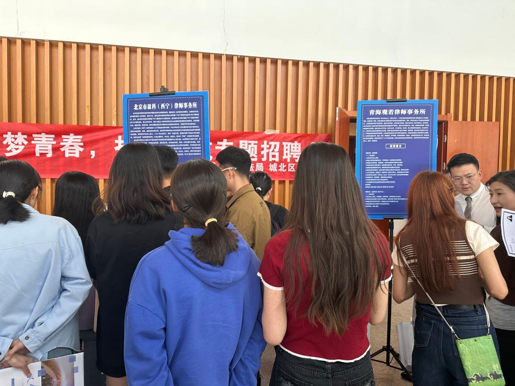 本次专场招聘邀请了北京市盈科律师事务所、四川原石律师事务所、青海立詹律师事务所、青海观若律师事务所、青海竞帆律师事务所、泰和泰(西宁)律师事务所、青海树人律师事务所等16家知名律所参加,提供了大量优质的就业和实习岗位。招聘展台前,人员攒动、气氛热烈。求职同学们手持简历,与心仪的单位深入交流,就律所概况、岗位要求、薪资待遇、职业发展等关心的问题与招聘人员诚恳交谈,并进行了简要面试。大三、大二的同学们也驻足观摩,提前为未来就业做好思想准备,积累求职经验。