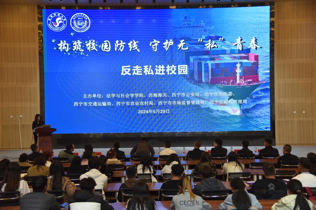 联合青海西海海关、西宁市公安局、西宁市发改委、西宁市交通运输局、西宁市农业农村局、西宁市市场监督管理局、西宁市邮政管理局等单位开展以“构筑校园防线,守护无‘私’青春”为主题的反走私和禁毒知识进校园宣讲活动。