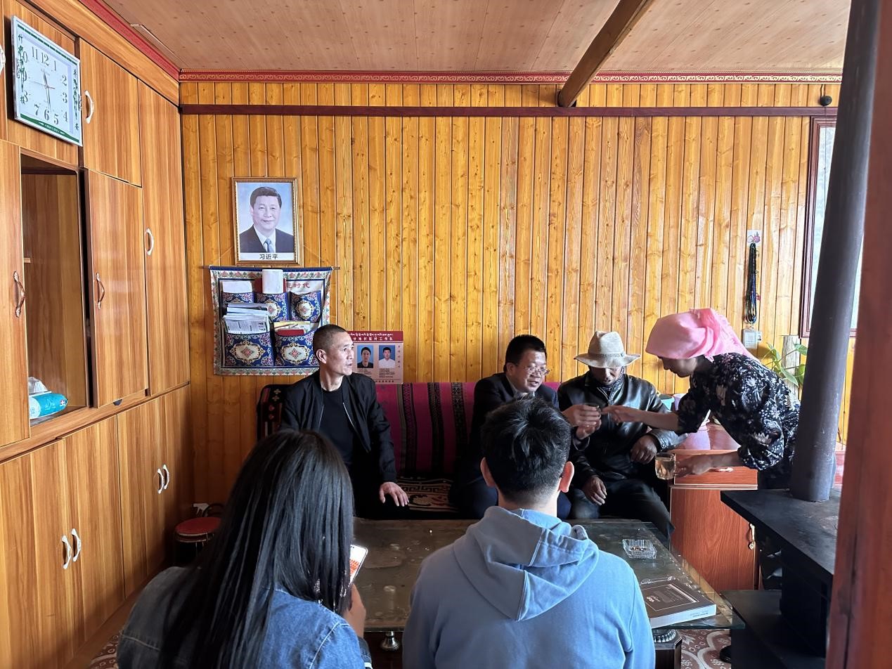 结对慰问活动中,老师们首先来到村委会,深入了解廿地村集体经济发展、村民收入、脱贫攻坚成果巩固、乡村振兴工作推进等情况,并慰问我校驻村干部。在驻村干部的带领下,扶贫小组深入结对帮扶脱贫农户家中走访慰问,与牧民朋友亲切交谈,为群众送上米、面、油等生活必需品和慰问金,唠家常,问冷暖,关切询问结对帮扶户家庭成员的身体健康情况,了解农户家庭生产经营、经济收入、就医教育、政策落实等情况,认真听取帮扶对象的心声。向结对帮扶户们传递了党和政府对他们的关心、关注、关爱,引导鼓励脱贫户增强“感党恩、听党话、跟党走”的意识,坚定发展信念,克服暂时困难,努力增加家庭收入,改善生活状况,享受美好生活。