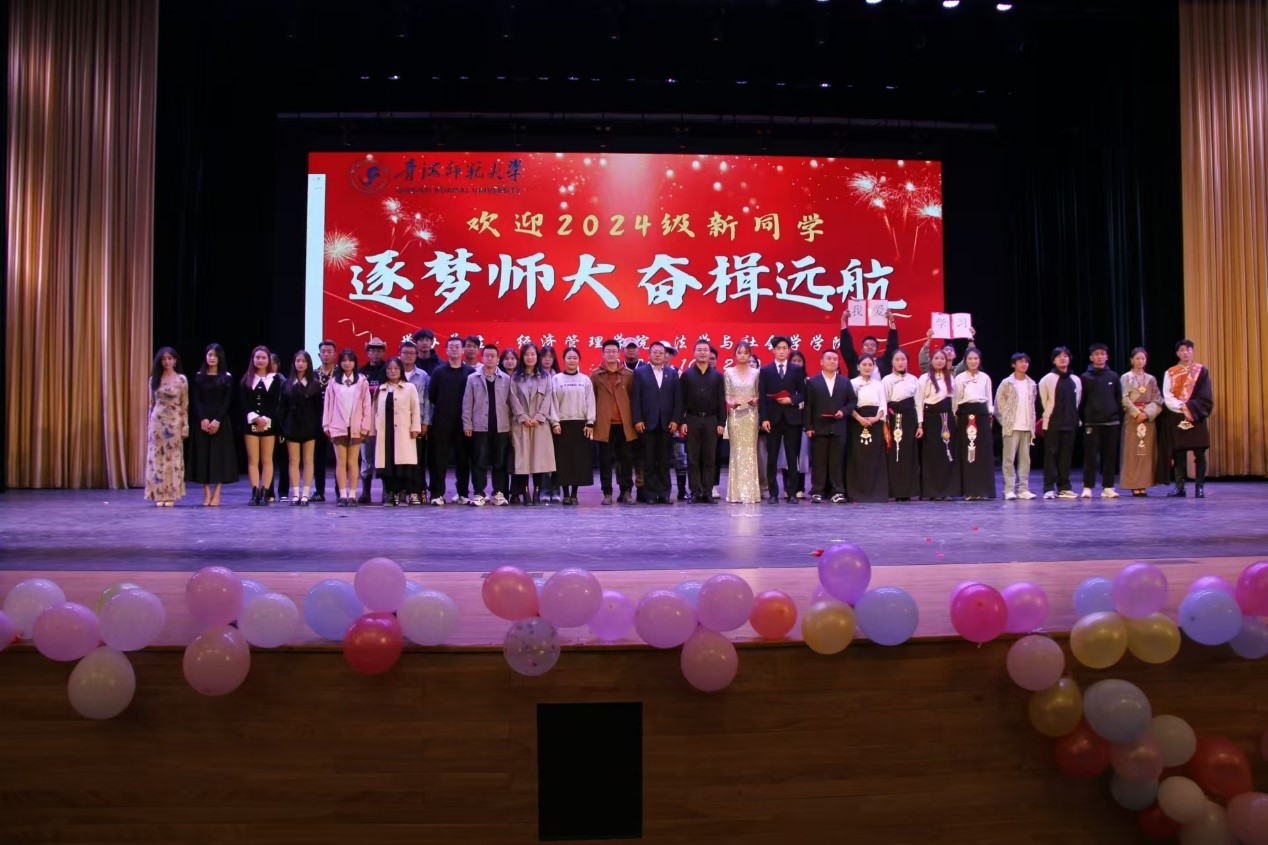 和经济管理学院联合举办的2024级新生迎新晚会隆重举行。来自两个学院的475名2024级新生和各年级在校生代表欢聚一堂,为逐梦师大共勉,为精彩青春放歌。
