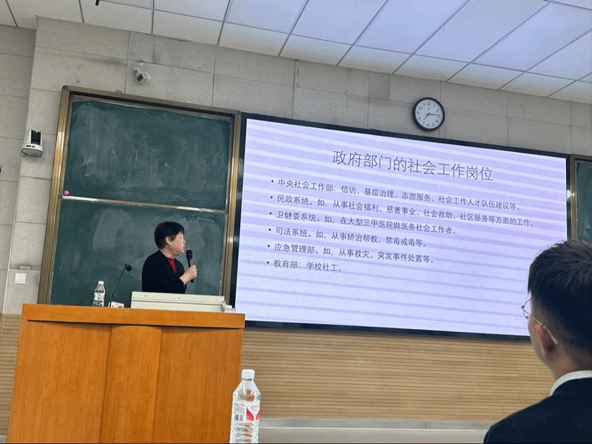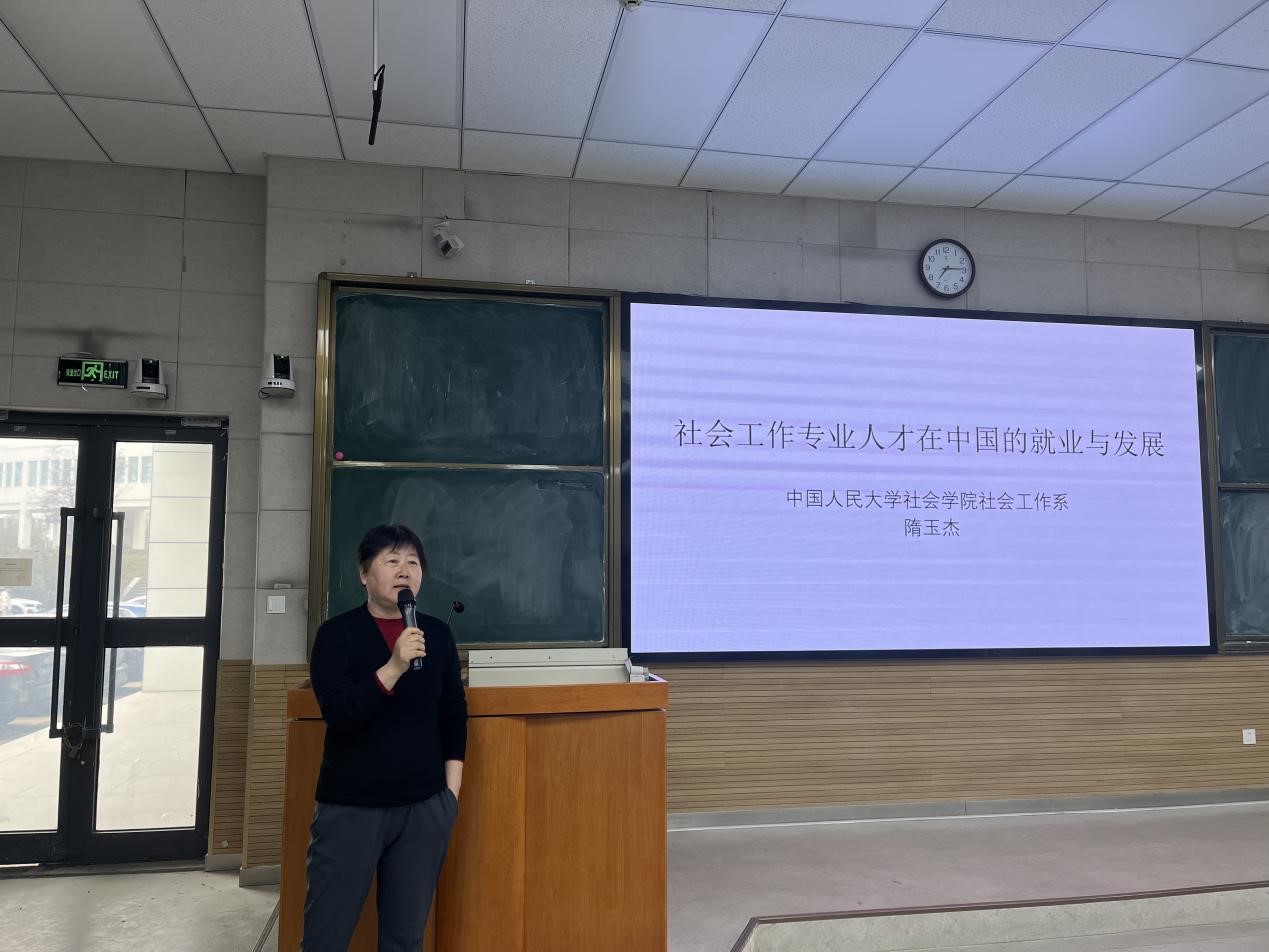 邀请教育部银龄计划教师、中国人民大学隋玉杰副教授为社会工作专业本科及硕士研究生作题为《社会工作专业人才在中国的就业与发展》专场讲座,近100名社会工作专业师生参加讲座。